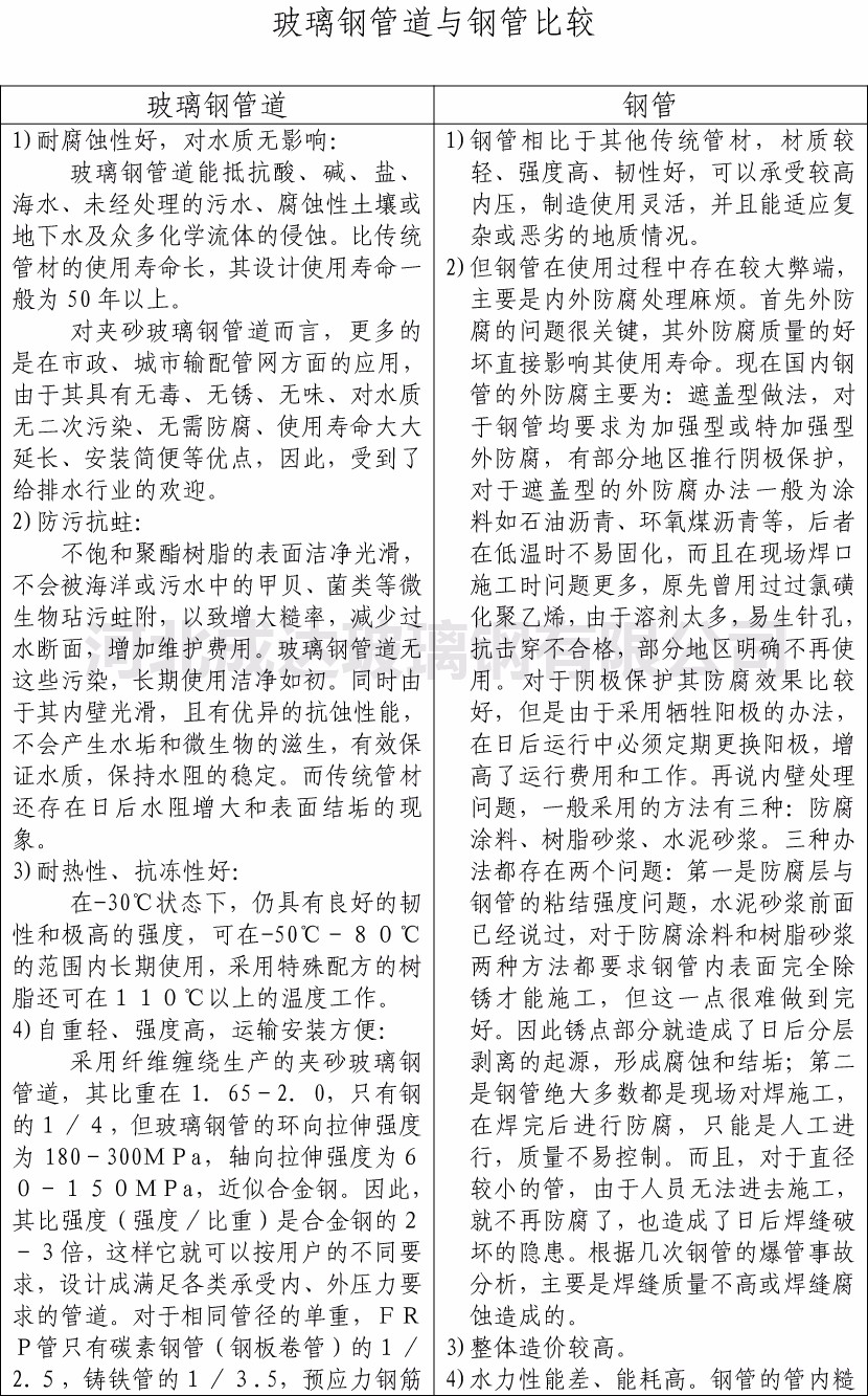 玻璃鋼管道與鋼管比較